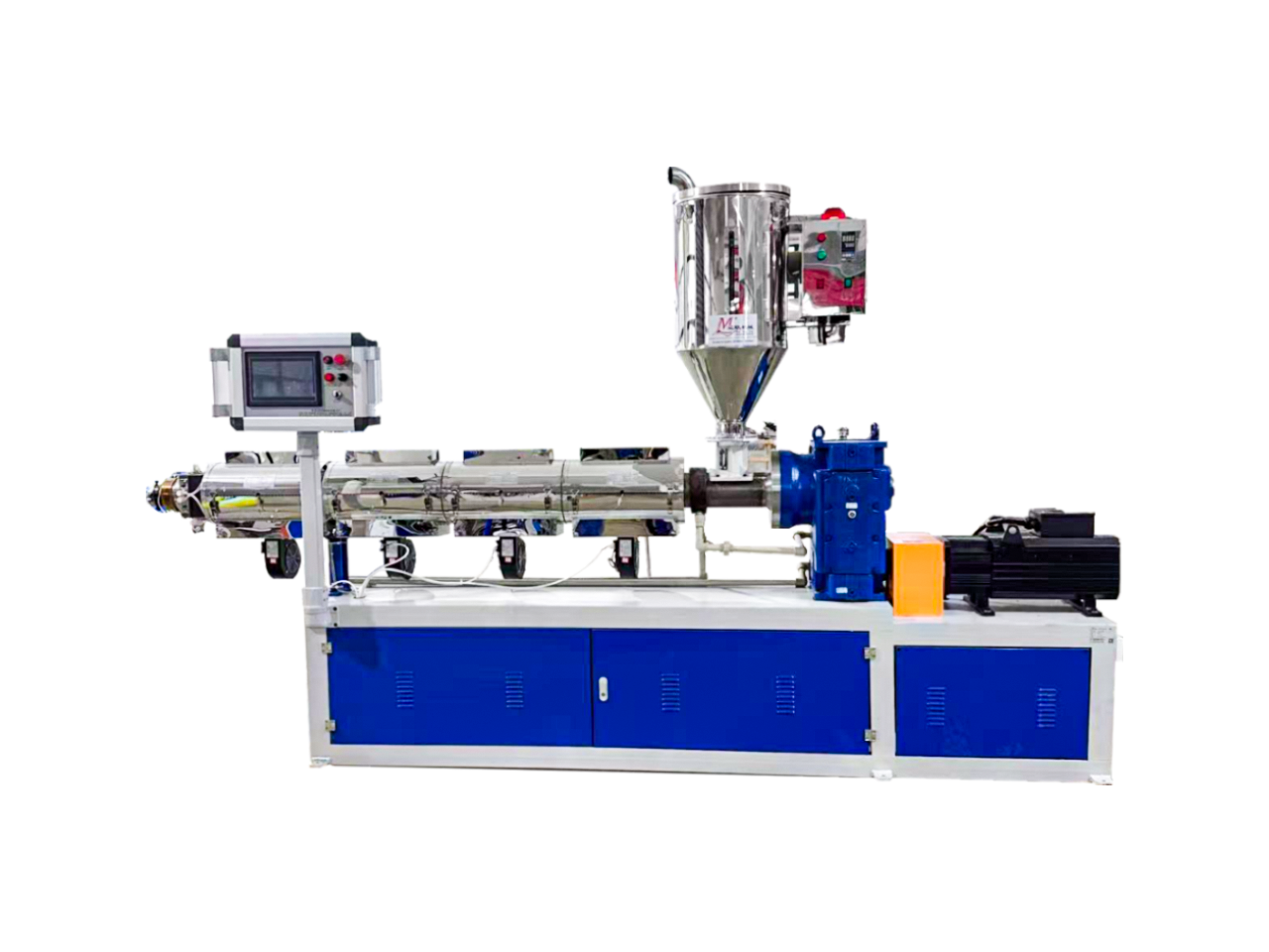 PLA單色吸管擠出機(jī)組由:PLA擠出機(jī)、機(jī)頭、冷卻定型裝置、牽引切割裝置、理管輸送裝置(選配)等部分組成,可實(shí)現(xiàn):單色擠出。采用專利技術(shù)全新BM分離型參數(shù)設(shè)計(jì)的PLA螺桿:長徑比33:1,螺桿采用遠(yuǎn)紅外高效節(jié)能加熱器,塑化效果好,采用高效節(jié)能伺服電機(jī)直聯(lián)驅(qū)動,擠出量大,出膠穩(wěn)定;主機(jī)采用觸控屏控制,配PLC和溫控模塊,控溫精度高,生產(chǎn)數(shù)據(jù)可滿足工廠智能化管理要求,是生產(chǎn)各種PLA和大口徑PP飲料吸管的智能化專業(yè)設(shè)備,變換部分零部件裝置可以生產(chǎn)精密小規(guī)格管材和小型特殊管棒。