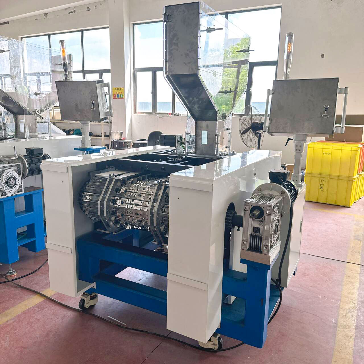 ML23系列全自動(dòng)可彎吸管成形機(jī)是將直管坯加工成可彎吸管的一種自動(dòng)化設(shè)備。 直管坯加入成形機(jī)上部料斗,經(jīng)45組成形牙針和1對(duì)成形牙輪連續(xù)動(dòng)作后將彎管成品自動(dòng)輸送出來,具有連續(xù)高效生產(chǎn)的能力。通過更換部分零件,可以實(shí)現(xiàn)多種孔徑規(guī)格彎管的生產(chǎn)。